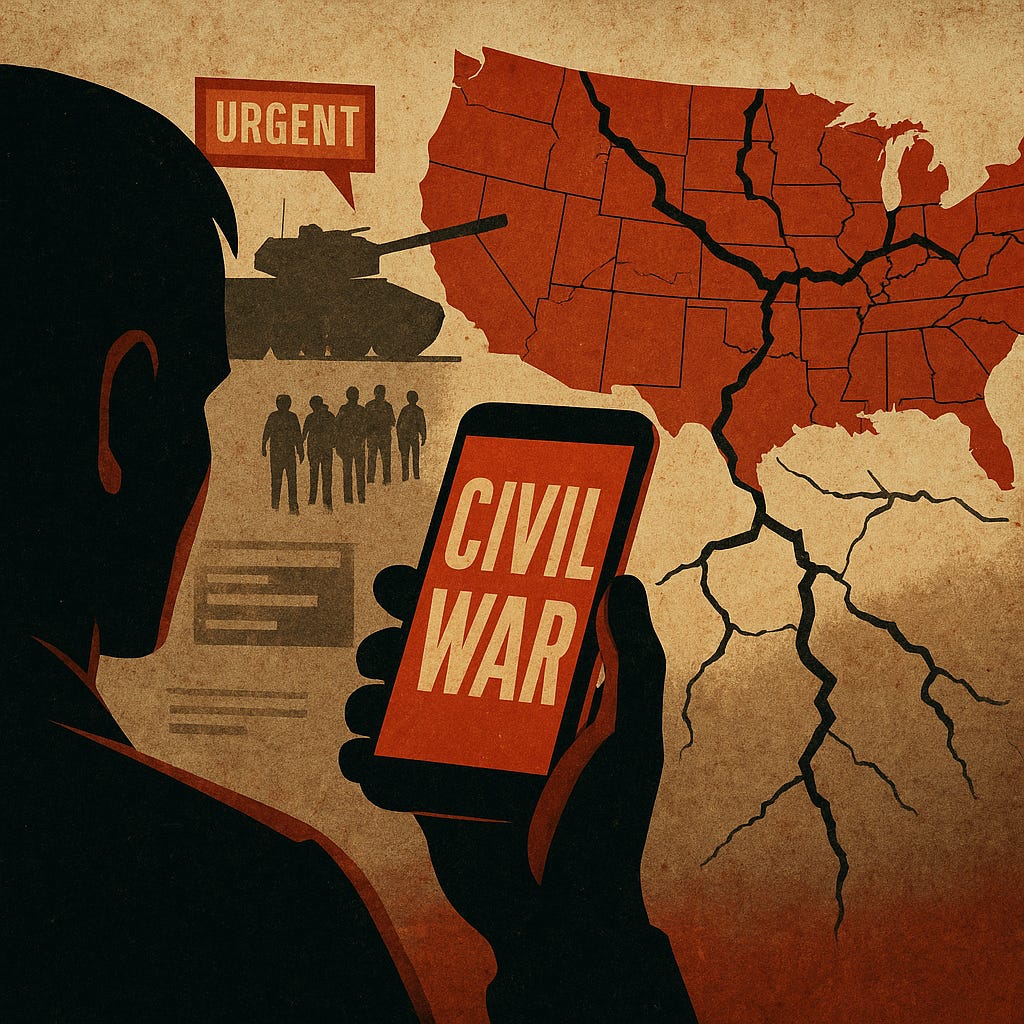 Soon, we might expect the sequel, and it’s going to be worse. But it won’t be a Plandemic this time. It’ll come in the form of a narrative: that America is headed for civil war. You’ll hear it everywhere—on cable news, in your feed, from AI-generated “whistleblowers” who don’t exist. And the beauty of it, for those running the game, is that it doesn’t even have to happen. It just has to feel like it’s happening.